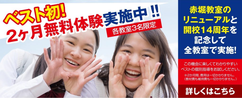 2019.11.02 ベスト初!2ヶ月無料体験実施!!≪各教室3名限定≫ベストは今年14周年を迎えるとことができました。地域のみなさまには心より感謝申し上げます。