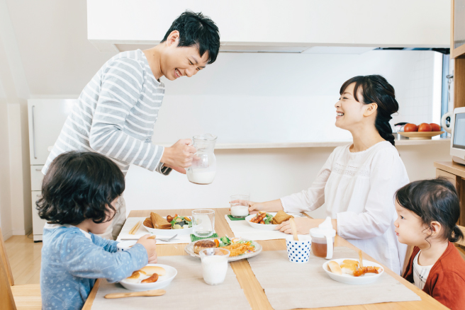子どもと一緒に朝ごはんを食べます。ベストは午後から出勤のため朝はたくさん時間がありますから、ゆっくり子どもに付き合えます。