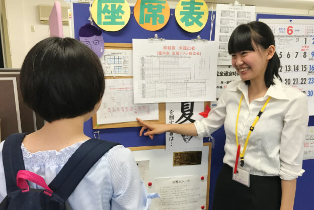 授業が終わったら教室長に今日の報告をします。授業で困っていることを相談できるので、一人で悩むことはありません。